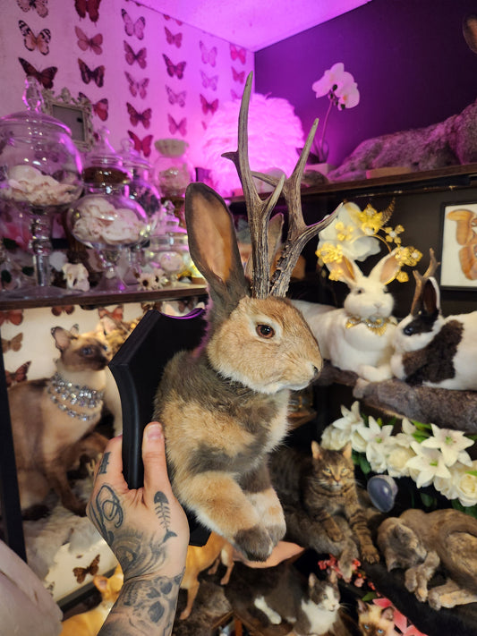 Taxidermies d'un minis jackalopes beige avec vrais un panaches