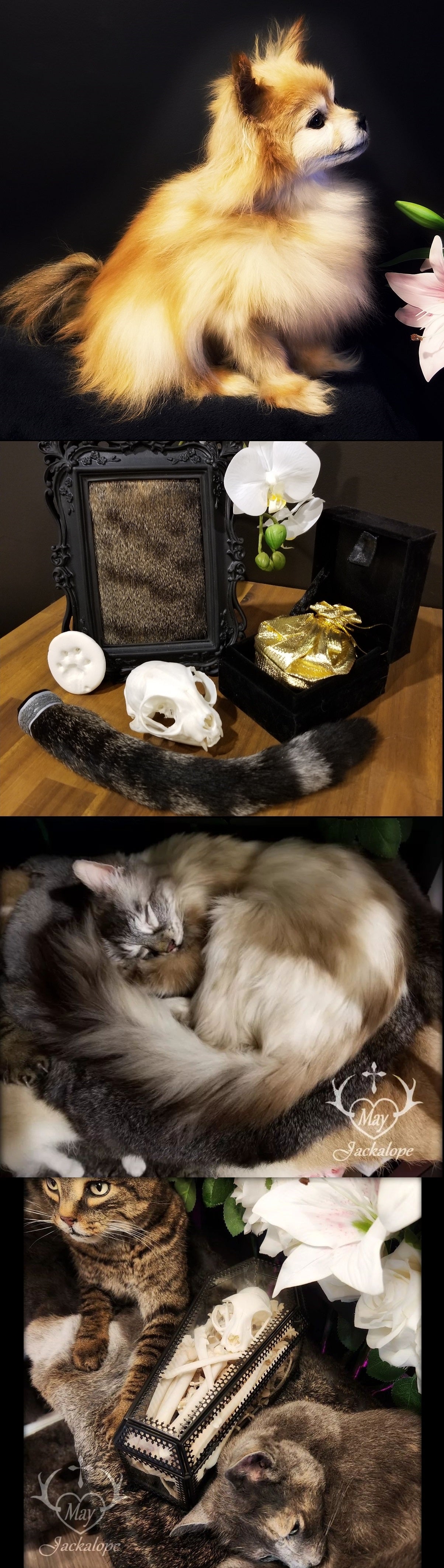 Mais pour les personnes qui souhaitent quand même ce service, pour l'instant je ne connais personne au Canada qui offre ce service spécifique de taxidermie complète d'animaux de compagnie, mais je peux vous référer à des artistes qui offrent des services commémoratifs d'animaux de compagnie (principalement préservation de la fourrure ou des os.)