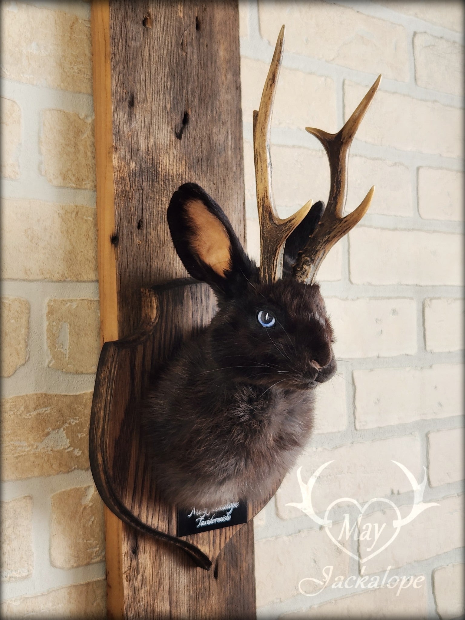 Real rabbit taxidermy transformed into magnificent jackalope. This jackalope is unique, made with care and attention to detail. The fur is professionally tanned to last a lifetime.