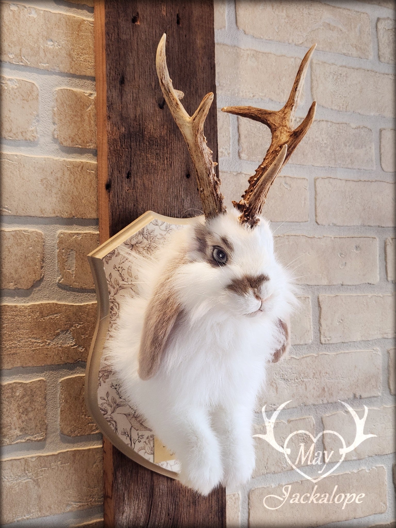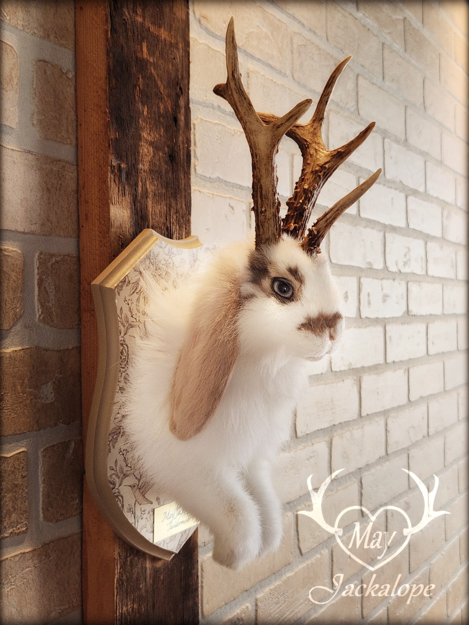 Real rabbit taxidermy transformed into magnificent jackalope. This jackalope is unique, made with care and attention to detail. The fur is professionally tanned to last a lifetime.