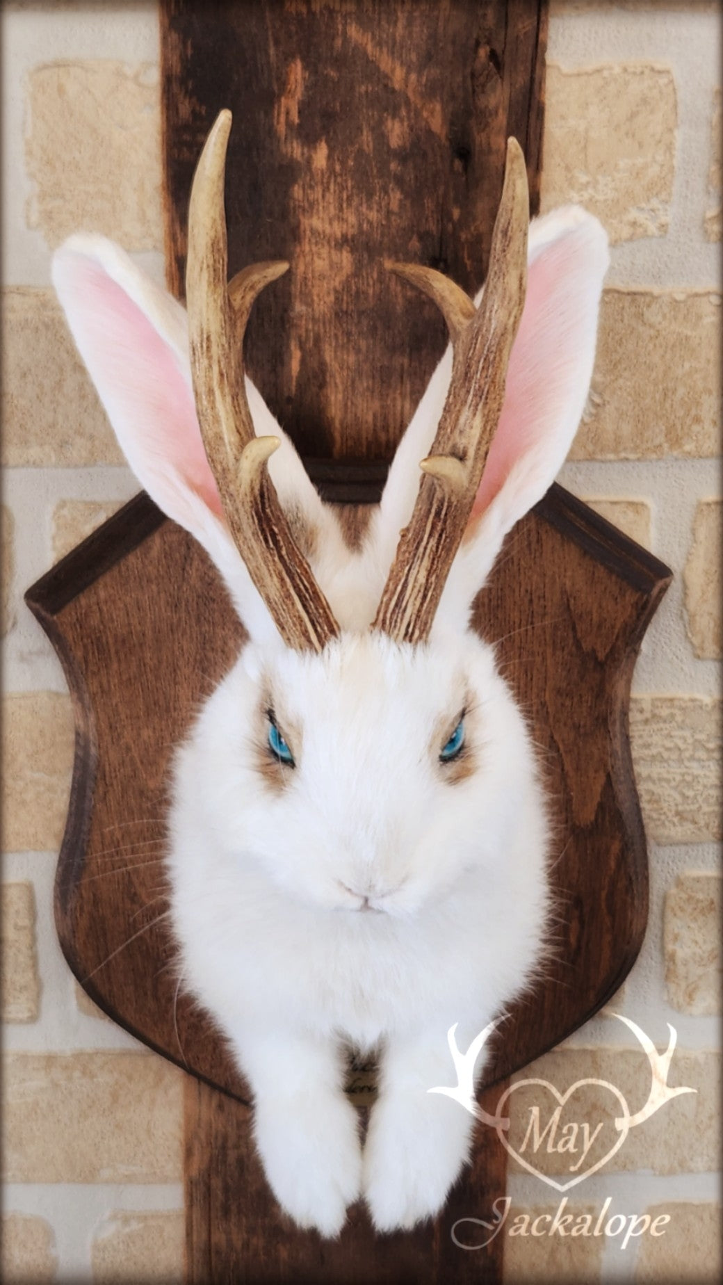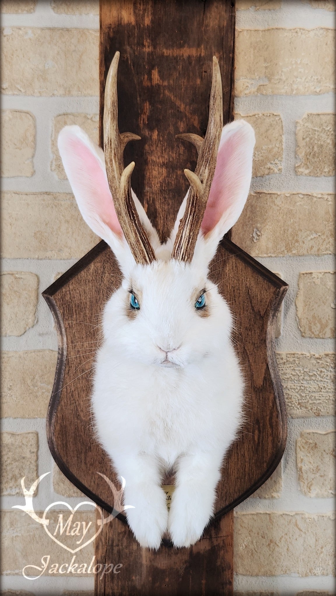 Real rabbit taxidermy transformed into magnificent jackalope. This jackalope is unique, made with care and attention to detail. The fur is professionally tanned to last a lifetime.